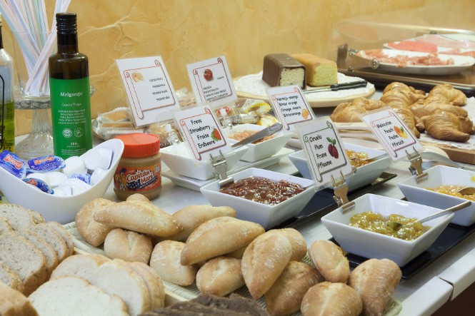 En el Hotel Duques de Nájera, cada mañana comienza con un desayuno completo y lleno de opciones: pan recién horneado, mermeladas artesanales, bollería, embutidos, frutas frescas y productos locales. Una propuesta pensada para todos los gustos, perfecta para empezar el día con energía y buen sabor.