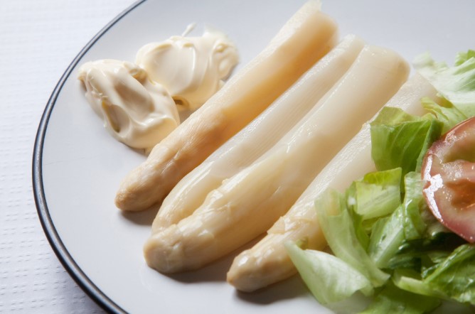Espárragos blancos acompañados de mayonesa y ensalada fresca. Un clásico de la cocina riojana que destaca por su sabor suave, textura delicada y presentación natural. Ideal para comenzar tu comida con un toque ligero y saludable.