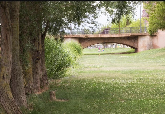 A pocos metros del hotel, el río Najerilla ofrece paisajes como este: un puente con historia, rodeado de árboles, flores y caminos verdes para pasear, descansar o simplemente respirar aire puro. Un entorno natural perfecto para desconectar y conectar con la esencia de Nájera.